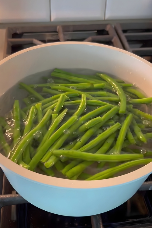 - Start with a 2-pound (900 g) bag of fresh green beans. Carefully trim the ends off each bean to ensure uniformity. Next, bring a large pot of salted water to a rolling boil and add the trimmed green beans. Blanch them for 3-5 minutes, just until they turn bright green and begin to soften. Drain the green beans immediately and run them under cold water to stop the cooking process—this will preserve their vibrant color and crisp texture.