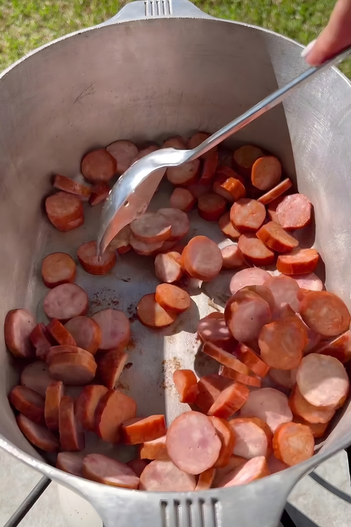 - Next, take one pound (450g) of andouille sausage—preferably a mix of pork and chicken—and slice it into bite-sized pieces. Heat a large skillet over medium heat and brown the sausage until it develops a nice caramelized crust. This step adds essential smoky flavors to the gumbo. Once browned, remove the sausage and set it aside on a plate lined with paper towels.