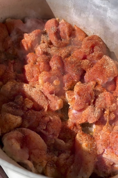- Season two to three pounds (900g – 1.4kg) of chicken thighs or drumsticks with a mix of two tablespoons of Cajun seasoning, one teaspoon of garlic powder, one teaspoon of onion powder, one teaspoon of black pepper, and half a teaspoon of cayenne pepper. In the same skillet used for the sausage, add the seasoned chicken and brown it for about 5-7 minutes per side, until golden. This helps seal in the juices and adds flavor. Once browned, remove the chicken and set it aside.