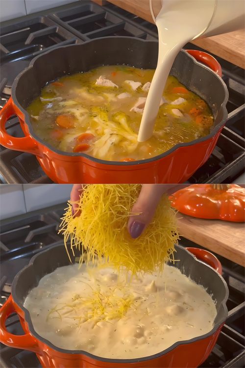 This creamy chicken noodle soup is the ultimate comfort food—it’s warm, hearty, and just what you need on a chilly or rainy day. It’s a versatile recipe that can easily be adjusted based on what you have on hand, and the addition of sweet potato adds a slightly sweet twist that pairs beautifully with the savory broth. The combination of flavors and textures makes every spoonful an enjoyable experience. Whether you’re new to cooking or a seasoned chef, this dish is simple enough for anyone to create yet so satisfying that everyone will want seconds. Give it a try and let it warm your day!