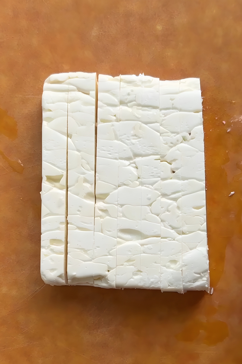 • 8 ounce feta cheese Cut into 8 planks.