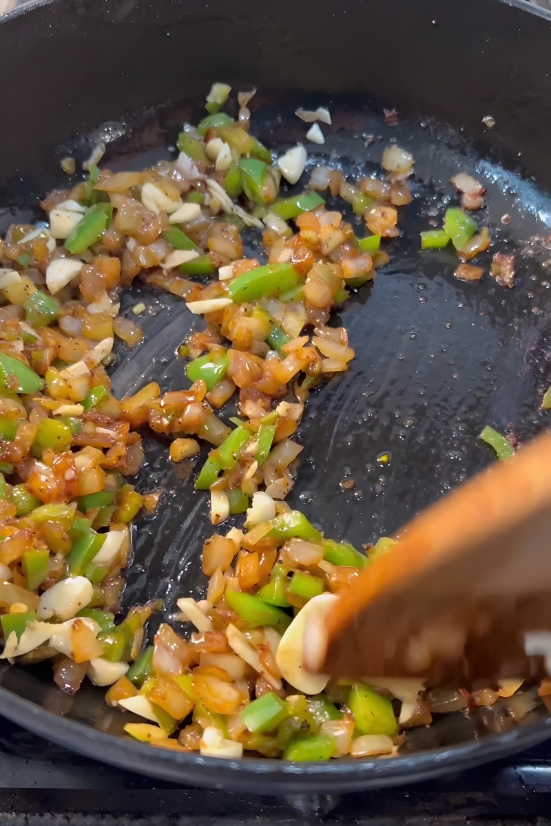- In the same pot, without discarding the flavorful bits left from browning the roast, add 1 chopped onion, 1 chopped bell pepper, and 3-4 minced garlic cloves. Sauté these aromatics until they become soft and fragrant, which usually takes around 5-6 minutes. Stir occasionally to prevent them from sticking.