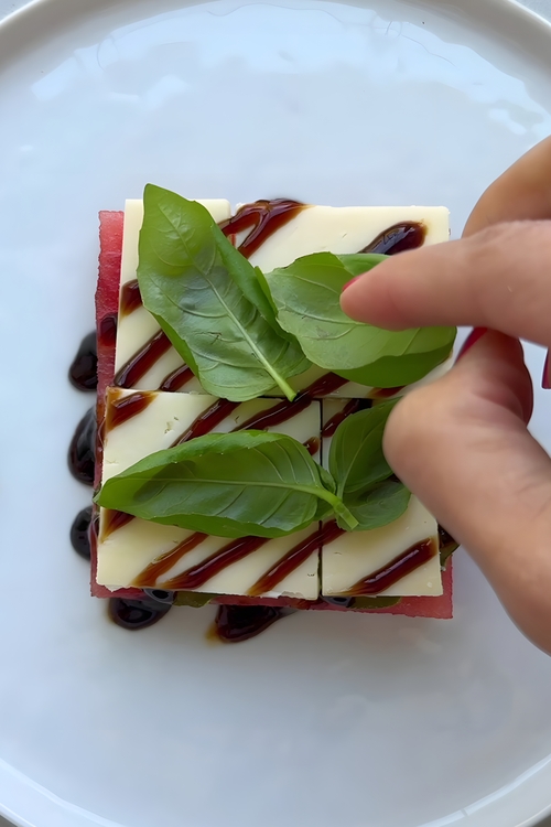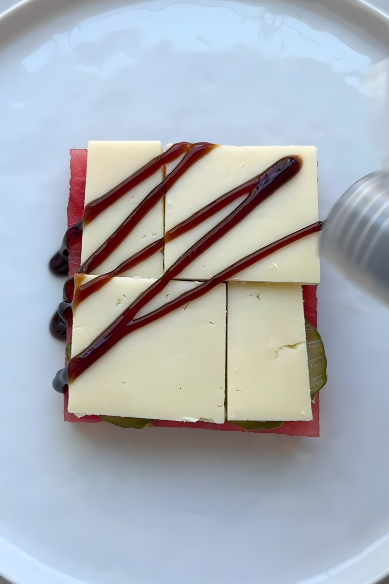 - Drizzle 1-2 tablespoons (15-30 mL) of balsamic glaze across the cheese. This adds a rich, tangy-sweet flavor that beautifully complements the watermelon’s sweetness.
